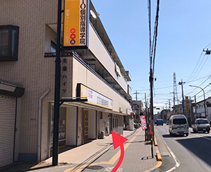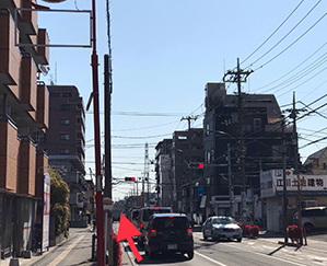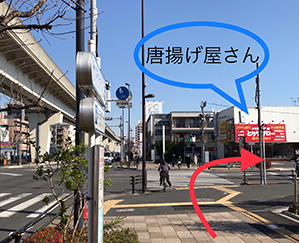 交差点を唐揚げ屋さん方面に渡って頂き右折